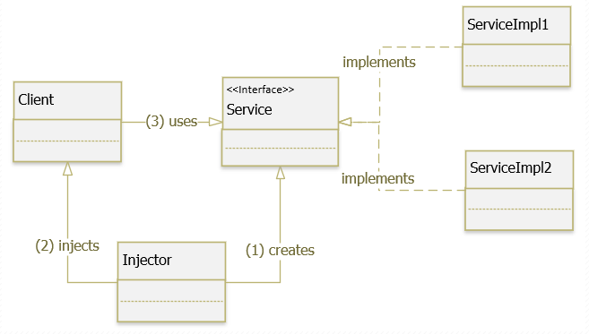 - Injector: là một lớp chịu trách nhiệm khởi tạo các service và inject các thể hiện này cho Client.